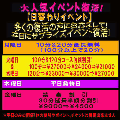 ※平日のみの開催!他の割引やポイント、チケットは併用出来ません。