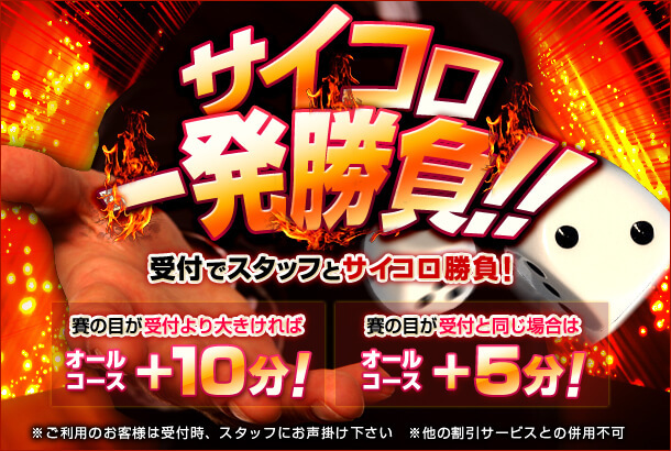 サイコロの賽の目が受付より大きければオールコース+10分サービス!