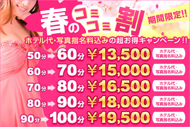 50分→60分¥13,500(ホテル代・写真指名料込み)