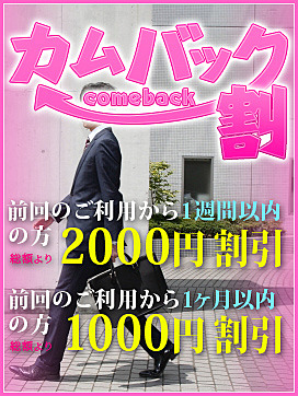 ※受付の際に合言葉「カムバック割」とお伝え下さい。