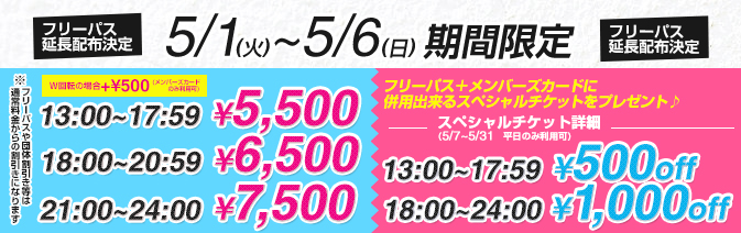 フリーパス延長配布決定!!